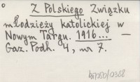 Z Polskiego Związku młodzieży katolickiej w Nowym Targu. 1916...