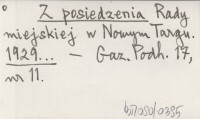 Z posiedzenia Rady miejskiej w Nowym Targu. 1929...