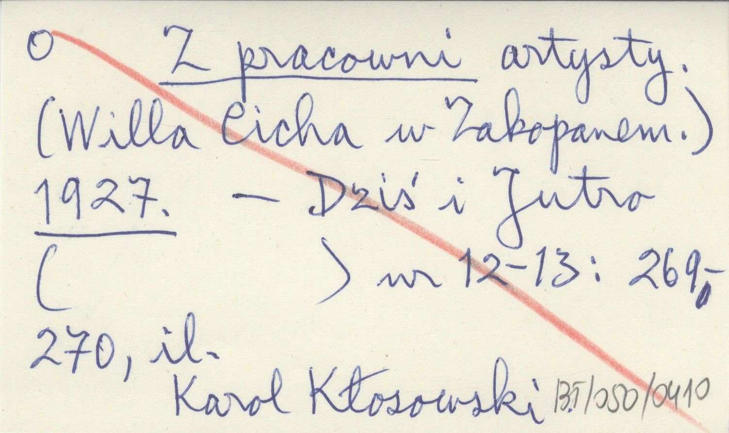 Z pracowni artysty. (Willa Cicha w Zakopanem). 1927