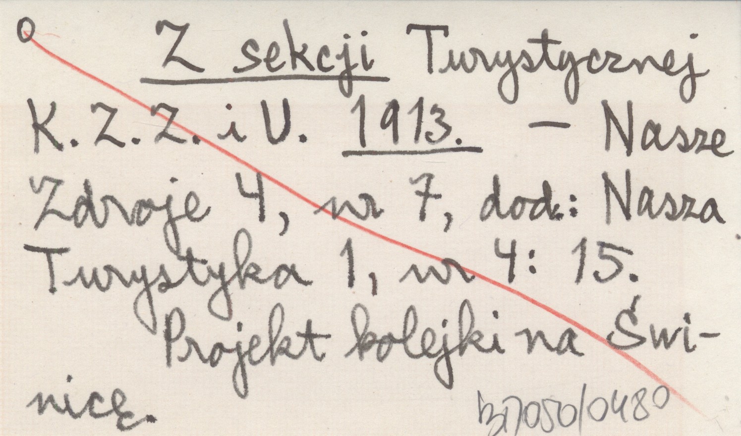 Nasza Turystyka, dod. do Nasze Zdroje 4, nr 7, 1, nr 4: 15. Projekt kolejki na Świnicę.