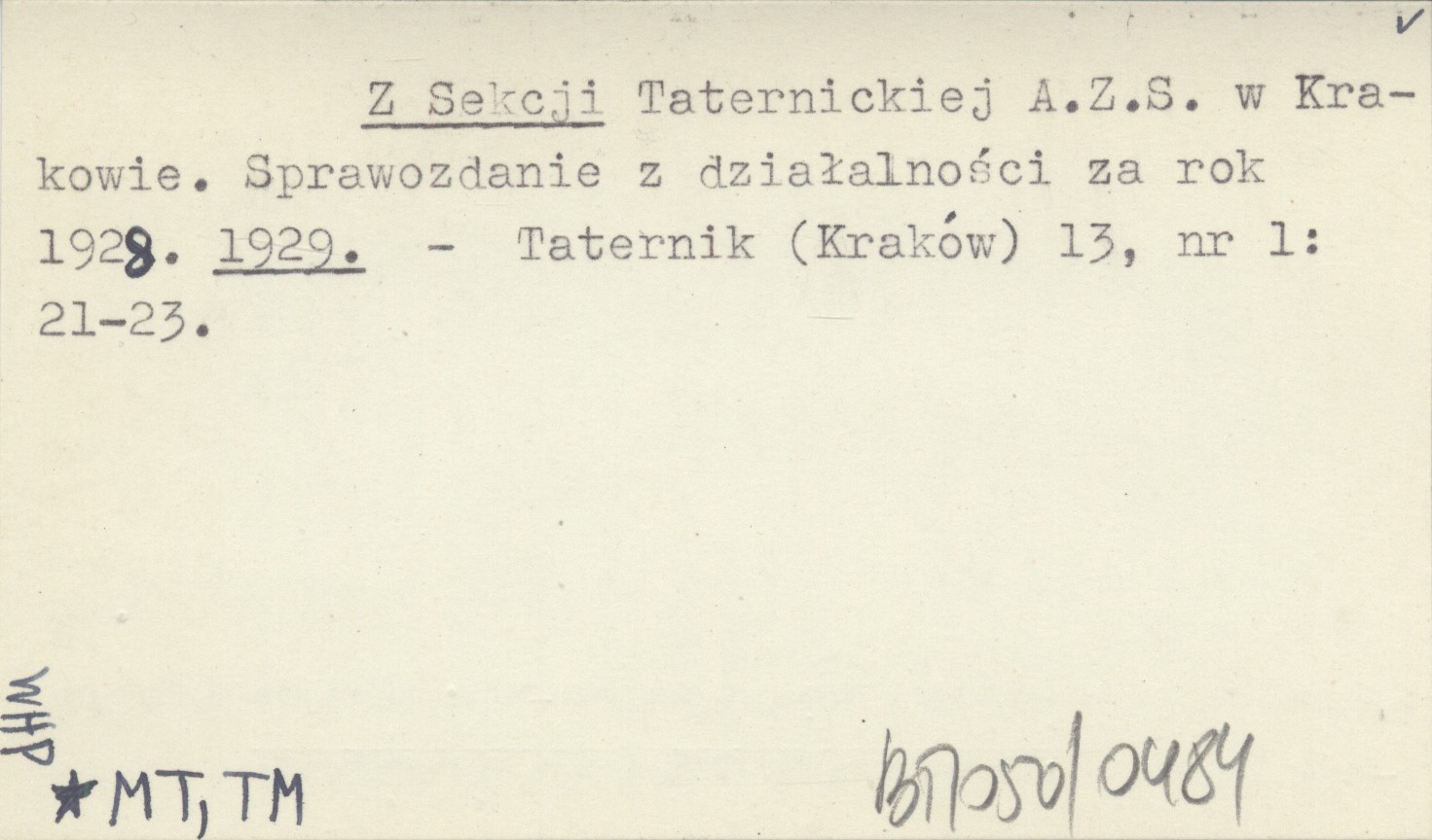 Taternik (Kraków) , 13, nr 1: 21-23.