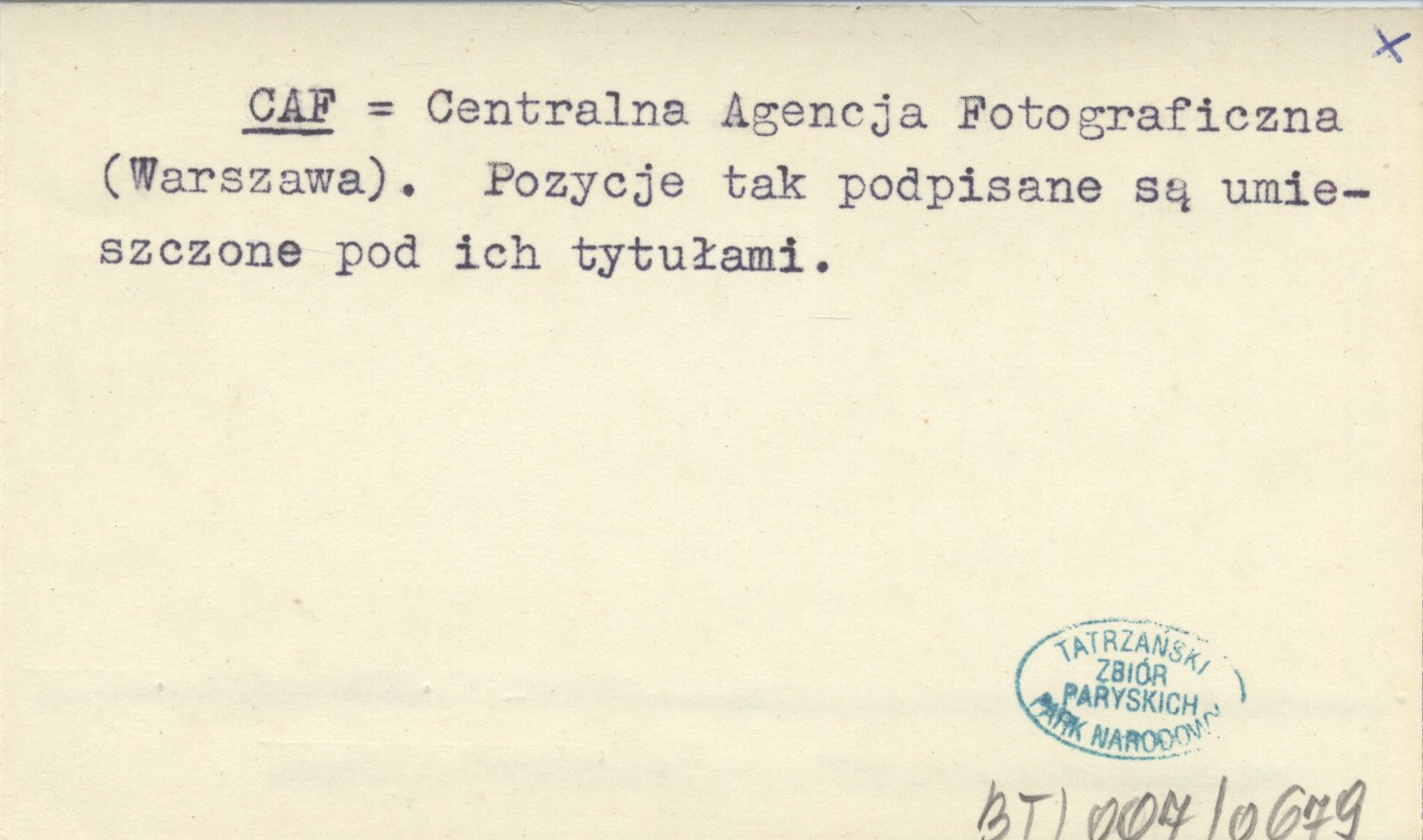 CAF Centralna Agencja Fotograficzna (Warszawa). Pozycje tak podpisane są umieszczone pod ich tytułami.