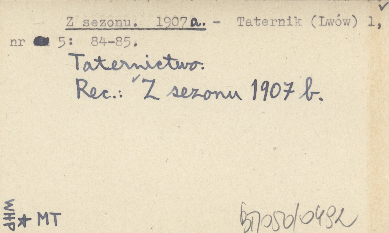 Taternik (Lwów) , 1, nr 5: 84-85. Taternictwo. REC: Z sezonu 1907 b