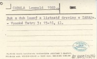 CABALA Leopold 1983 Buk a dub lesný a listnaté dreviny v TANAPe.