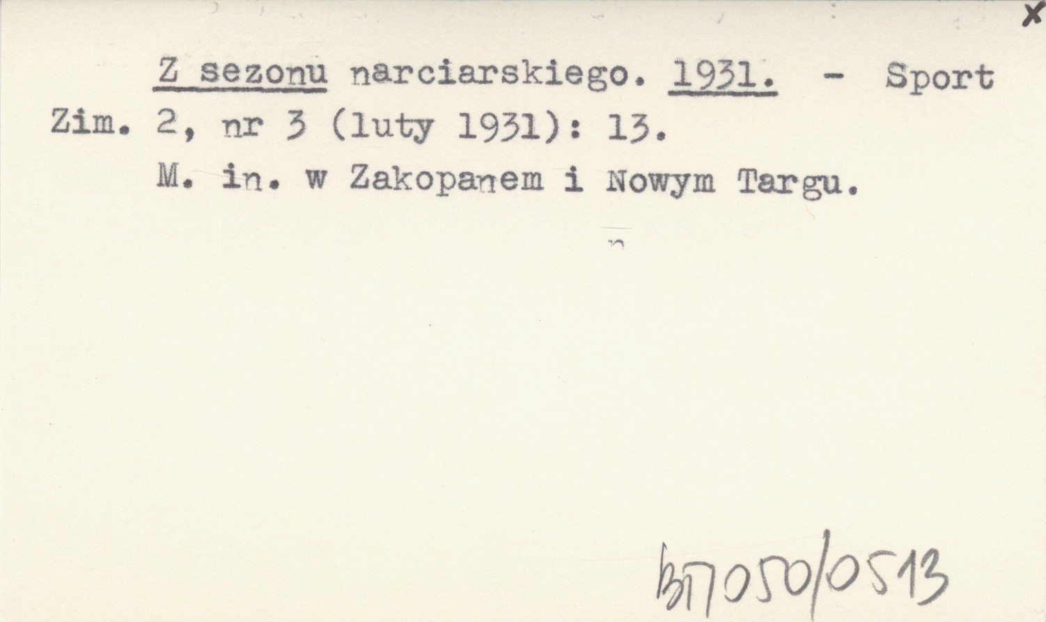 Sport Zimowy, 2, nr 3 (luty 1931): 13. M. in. w Zakopanem i Nowym Targu.
