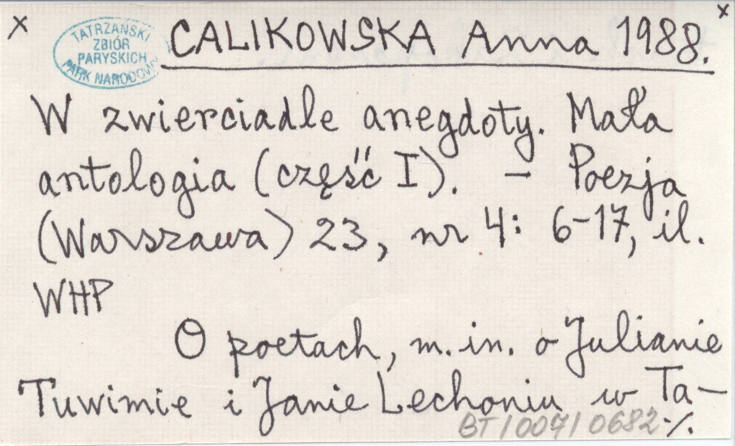 CALIKOWSKA Anna 1988 W zwierciadle anegdoty. Mała antologia (część I).