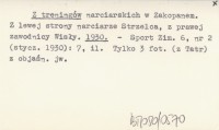 Z treningów narciarskich w Zakopanem. Z lewej strony narciarze Strzelca, z prawej zawodnicy Wisły. 1930