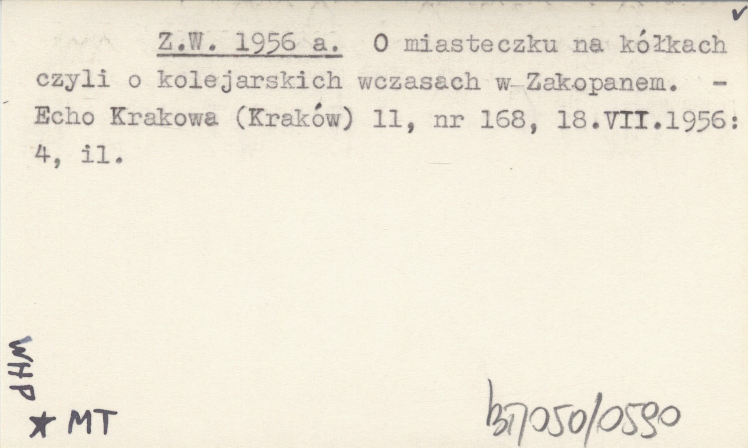 Z. W. 1956 a O miasteczku na kółkach czyli o kolejarskich wczasach w Zakopanem.