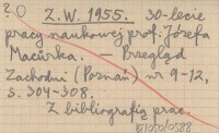 Z. W. 1955 30-lecie pracy naukowej prof. Józefa Macůrka.