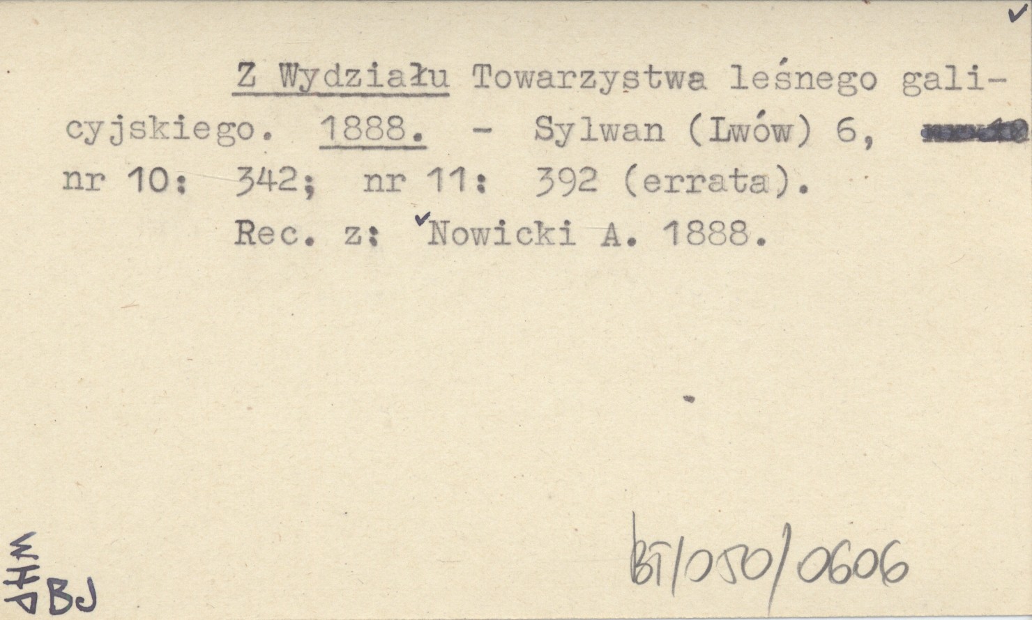 Sylwan (Lwów) , 6, nr 10: 342 ; nr 11: 392 (err.). Recenzja z: NOWICKI A. 1888.
