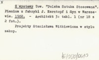 Z wystawy Tow. "Polska Sztuka Stosowana". Pianina z fabryki J. Kerntopf i Syn w Warszawie. 1902