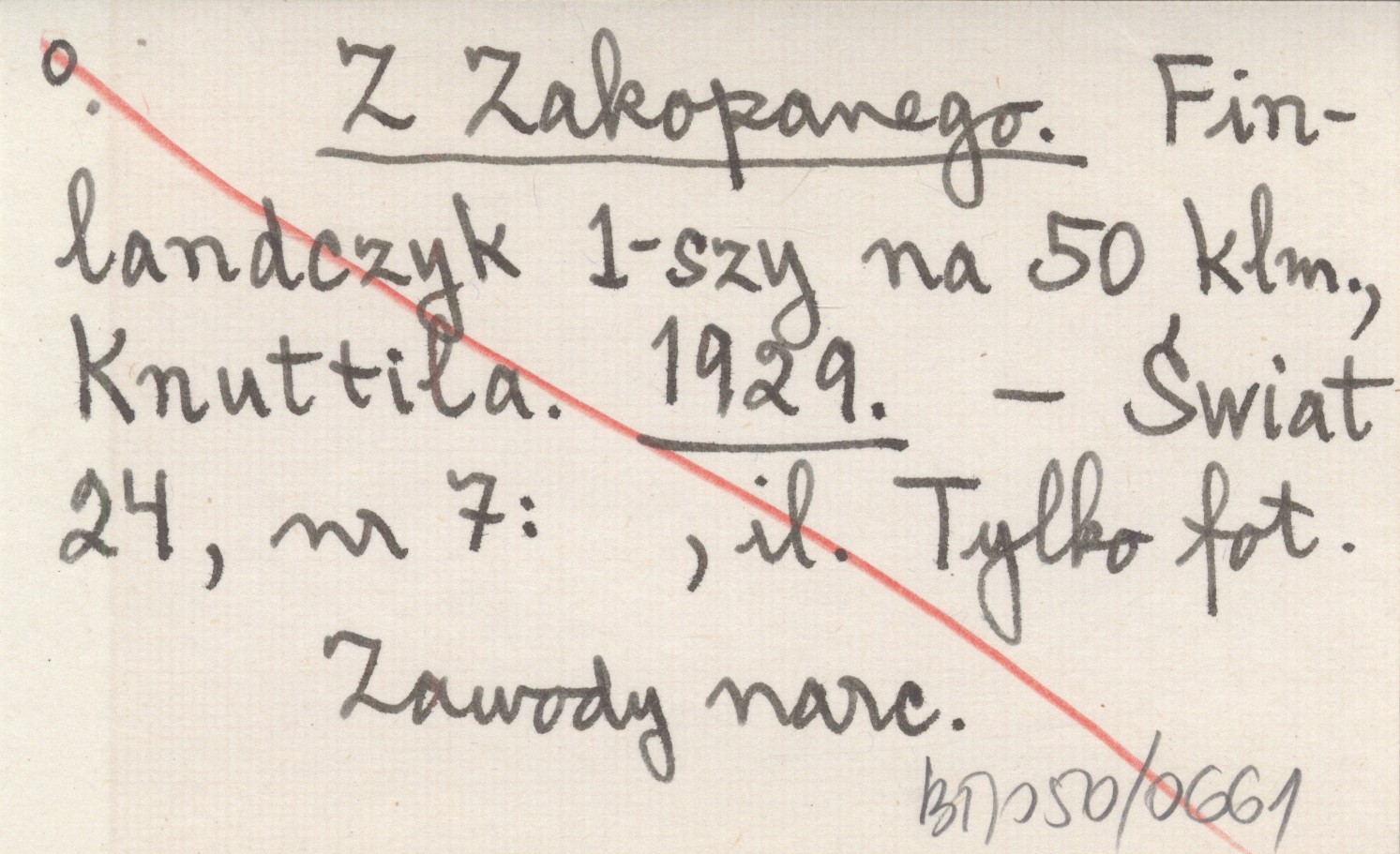 Z Zakopanego. Finlandczyk 1-szy na 50 klm., Knuttila. 1929
