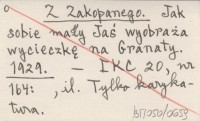 Z Zakopanego. Jak sobie mały Jaś wyobraża wycieczkę na Granaty. 1929
