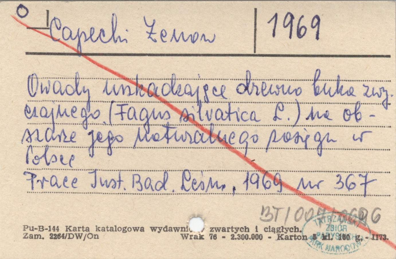 CAPECKI Zenon 1969 Owady uszkadzające drewno buka zwyczajnego (Fagus silvatica L.) na obszarze jego naturalnego zasięgu w Polsce.
