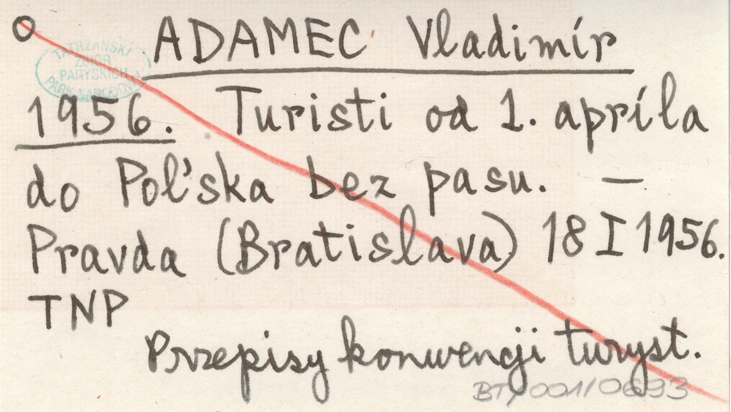 ADAMEC Vladimír 1956 Turisti od 1. apríla do Poľska bez pasu.
