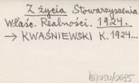 Z życia Stowarzyszenia Właśc. Realności. 1924