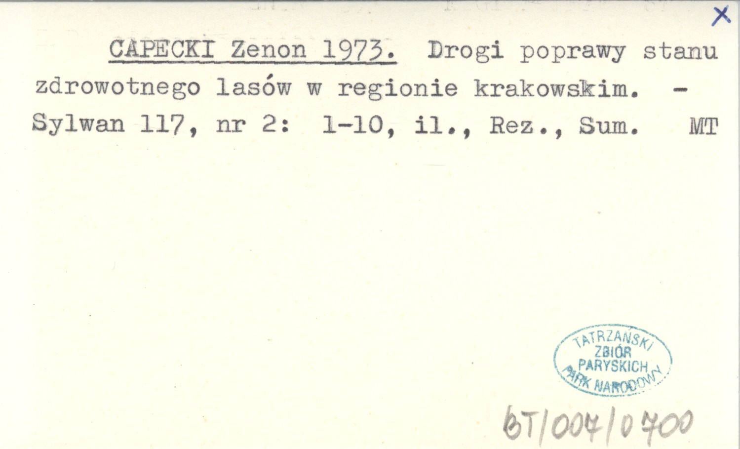 CAPECKI Zenon 1973 Drogi poprawy stanu zdrowotnego lasów w regionie krakowskim.