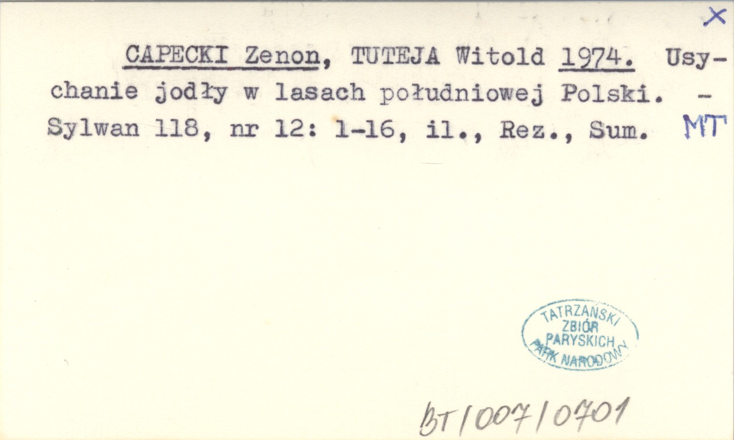 CAPECKI Zenon TUTEJA, Witold. ; 1974 Usychanie jodły w lasach południowej Polski.