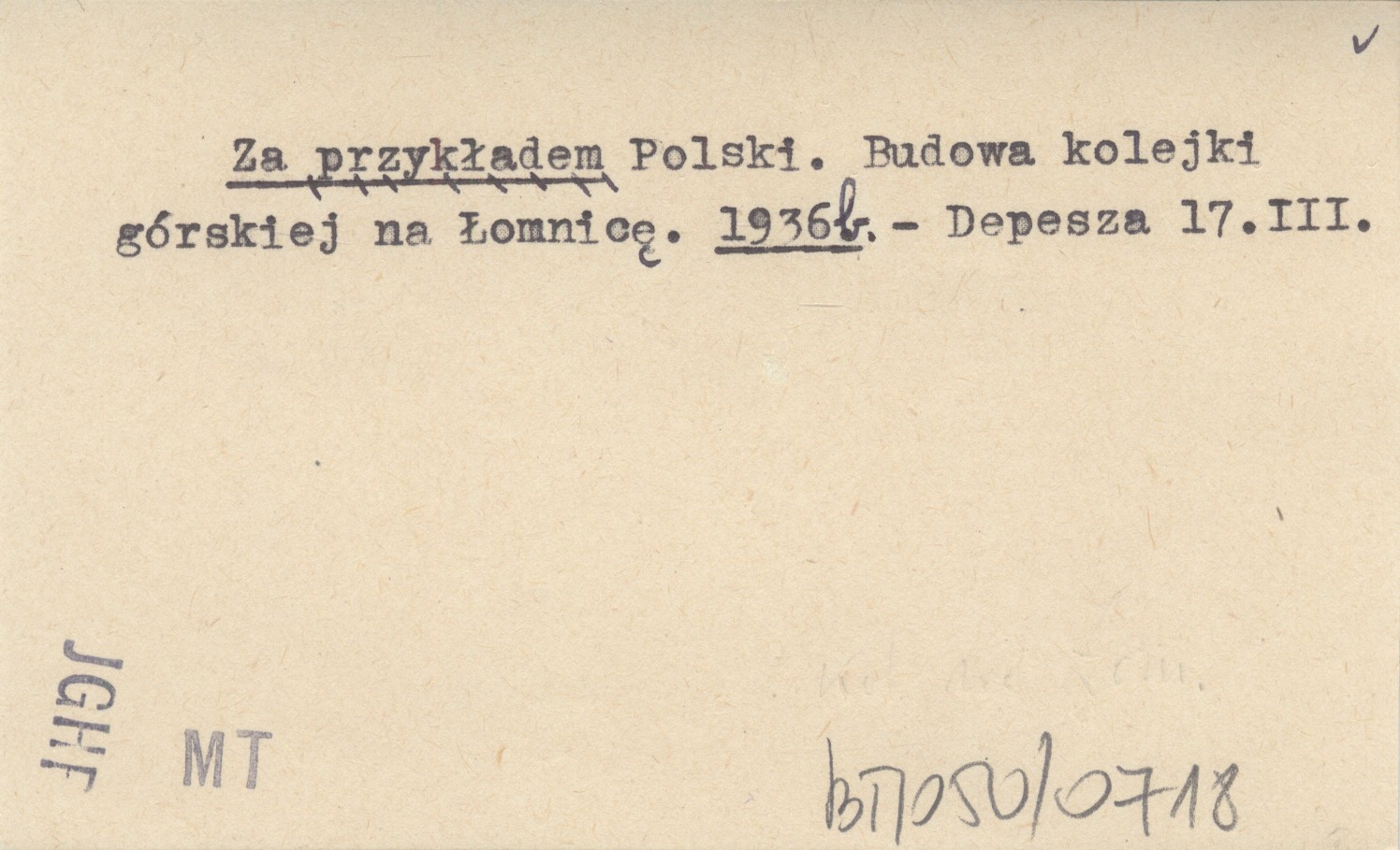 Za przykładem Polski. Budowa kolejki górskiej na Łomnicę. 1936 b