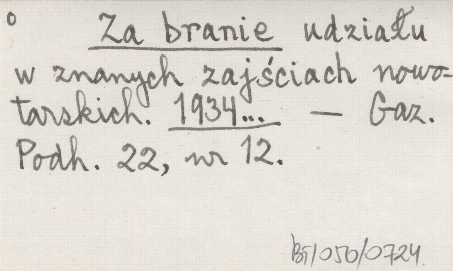 Za branie udziału w znanych zajściach nowotarskich. 1934...
