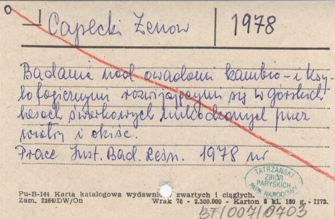 CAPECKI Zenon 1978 Badania nad owadami kambio- i ksylofogicznymi rozwijającymi się w górskich lasach świerkowych uszkodzonych przez wiatry i okiść.