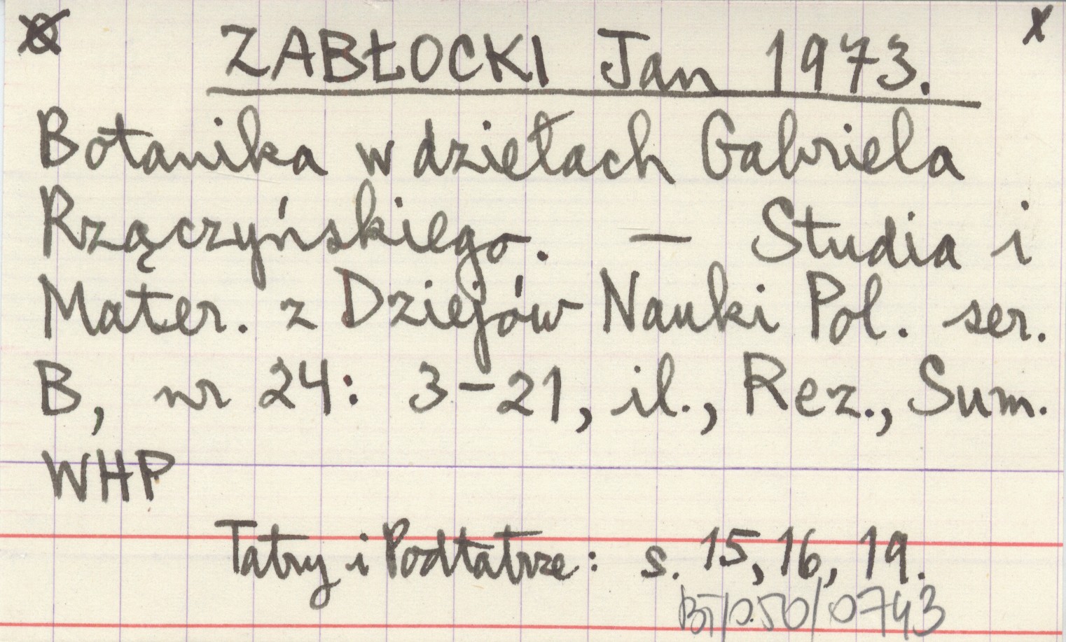 ZABŁOCKI Jan 1973 Botanika w dziełach Gabriela Rzączyńskiego.