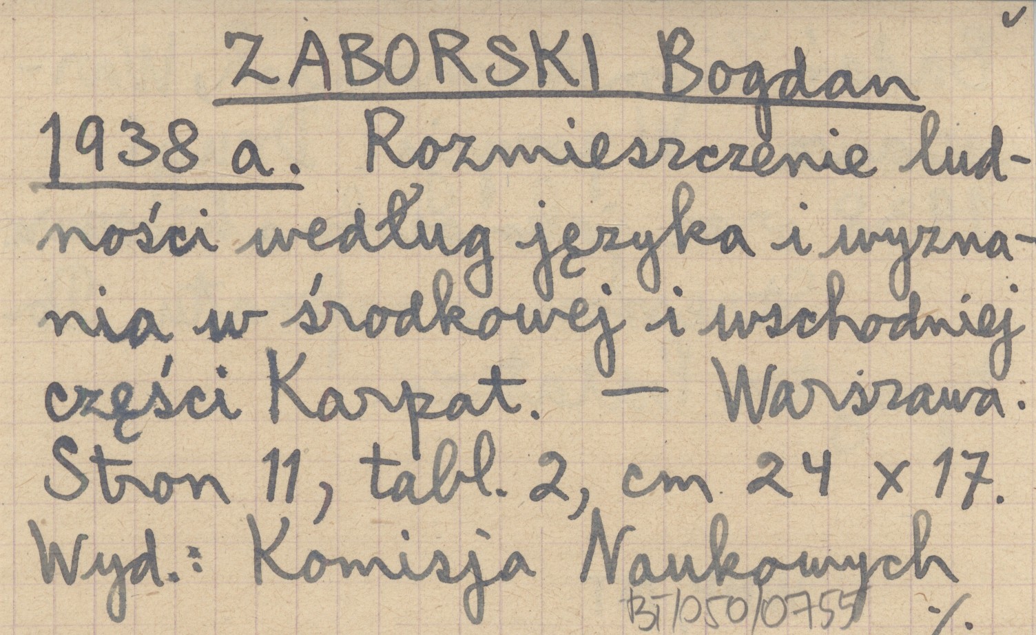 ZABORSKI Bogdan 1938 a Rozmieszczenie ludności według języka i wyznania w środkowej i wschodniej części Karpat.
