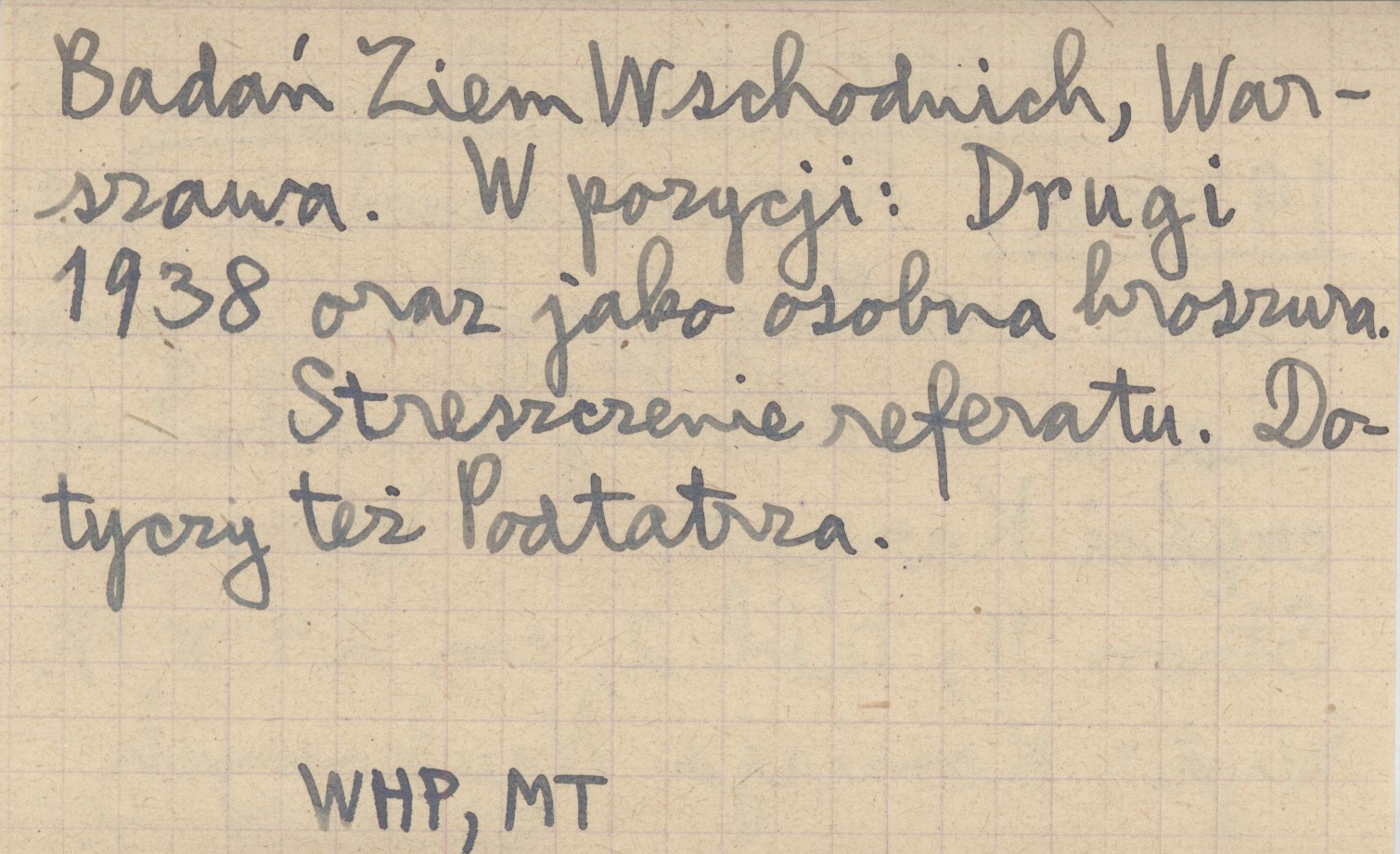Drugi 1938 Komisja Naukowych Badań Ziem Wschodnich, Warszawa , 11 s., 2 k., 24x17 cm. Streszczenie referatu. Dotyczy też Podtatrza. Również jako osobna broszura.