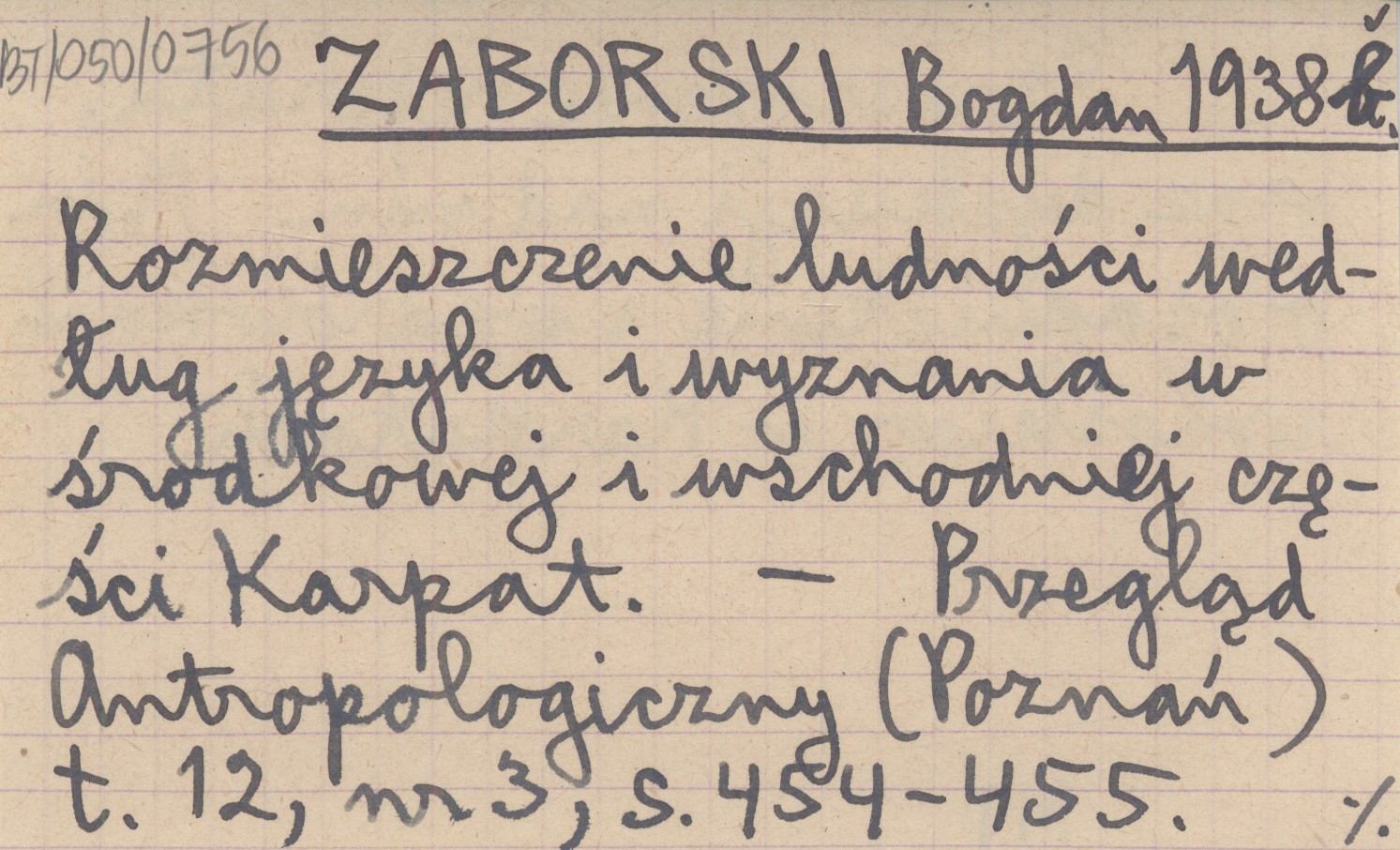 Przegląd Antropologiczny (Poznań) , T. 12, nr 3: 454-455. Streszczenie referatu oraz dyskusji nad nim. M. in. o osadnictwie i wędrówkach wołoskich w Karpatach.