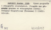 ZABORSKI Bogdan 1926 Zjazd geografów i etnografów słowiańskich. (Congrés des géographes et ethnographes slaves).