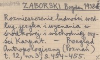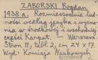 ZABORSKI Bogdan 1938 b Rozmieszczenie ludności według języka i wyznania w środkowej i wschodniej części Karpat.
