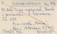 ZACHARIASIEWICZ Jan 1886 W dole i na wyżynach. Nowele i powiastki.