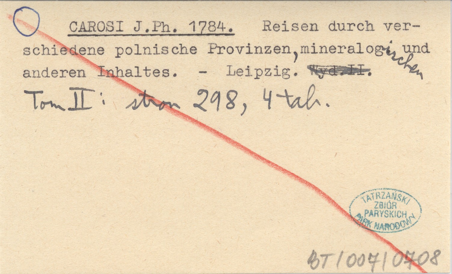 CAROSI J. Ph. 1784 Reisen durch verschiedene polnische Provinzen mineralogischen und anderen Inhaltes.