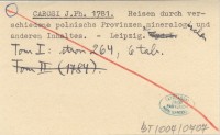 CAROSI J. Ph. 1781 Reisen durch verschiedene polnische Provinzen mineralogischen und anderen Inhaltes.