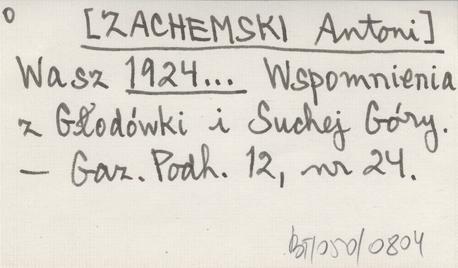 Wasz [ZACHEMSKI Antoni] 1924... Wspomnienia z Głodówki i Suchej Góry.