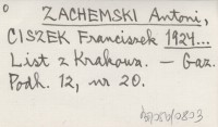 ZACHEMSKI Antoni CISZEK, Franciszek. ; 1924... List z Krakowa.