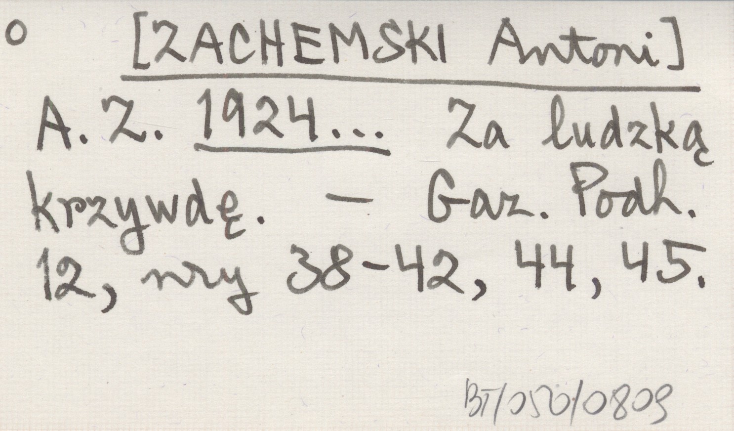 A. Z. [ZACHEMSKI Antoni] 1924... Za ludzką krzywdę.