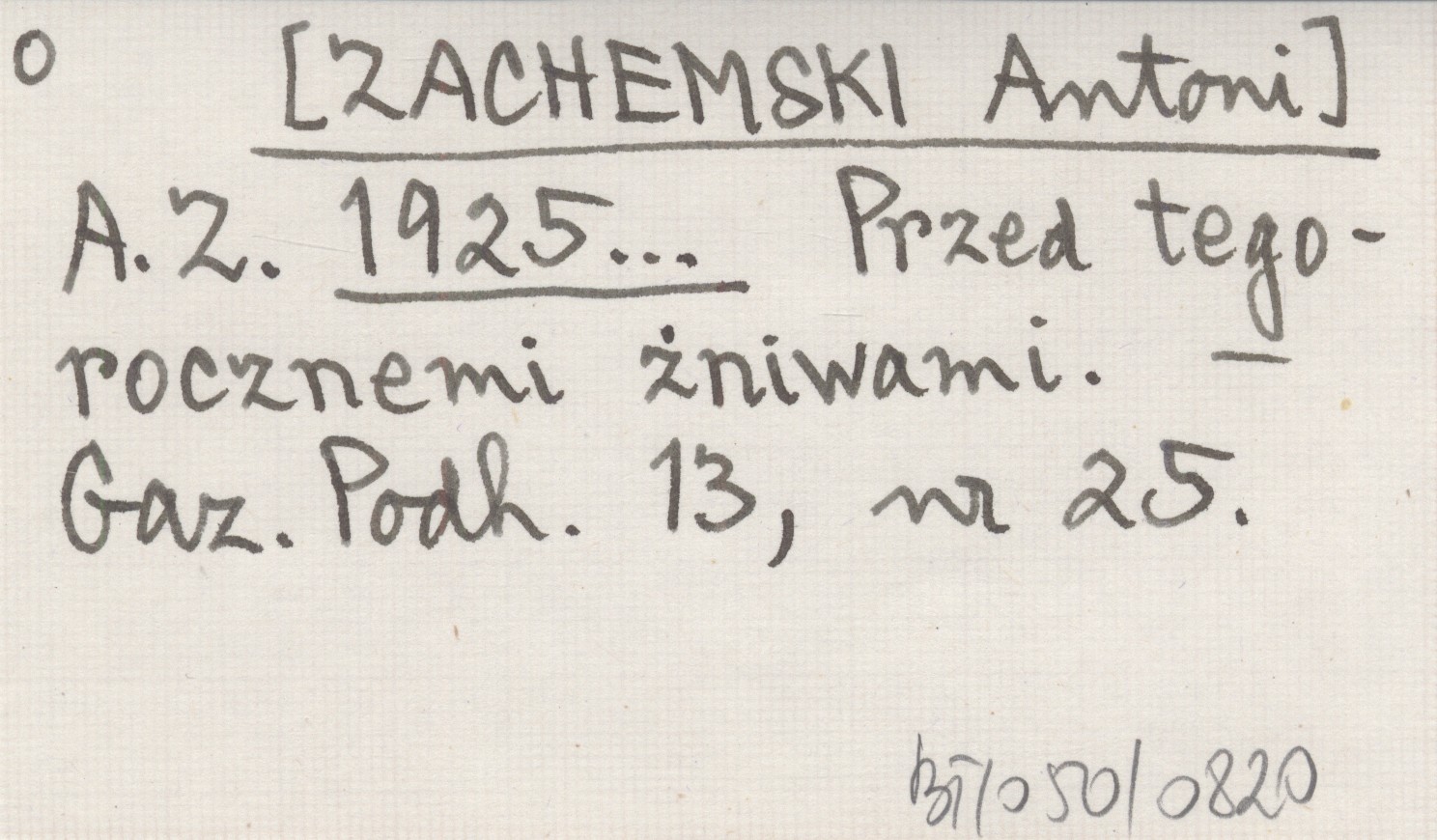 A. Z. [ZACHEMSKI Antoni] 1925... Przed tegoroczemi żniwami.