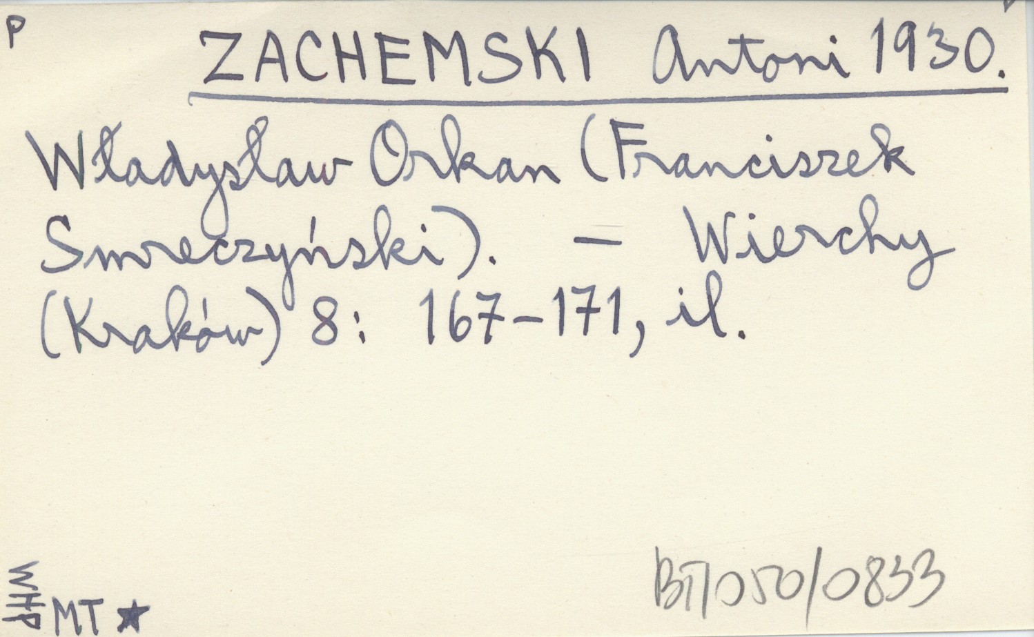 ZACHEMSKI Antoni 1930 Władysław Orkan (Franciszek Smreczyński).