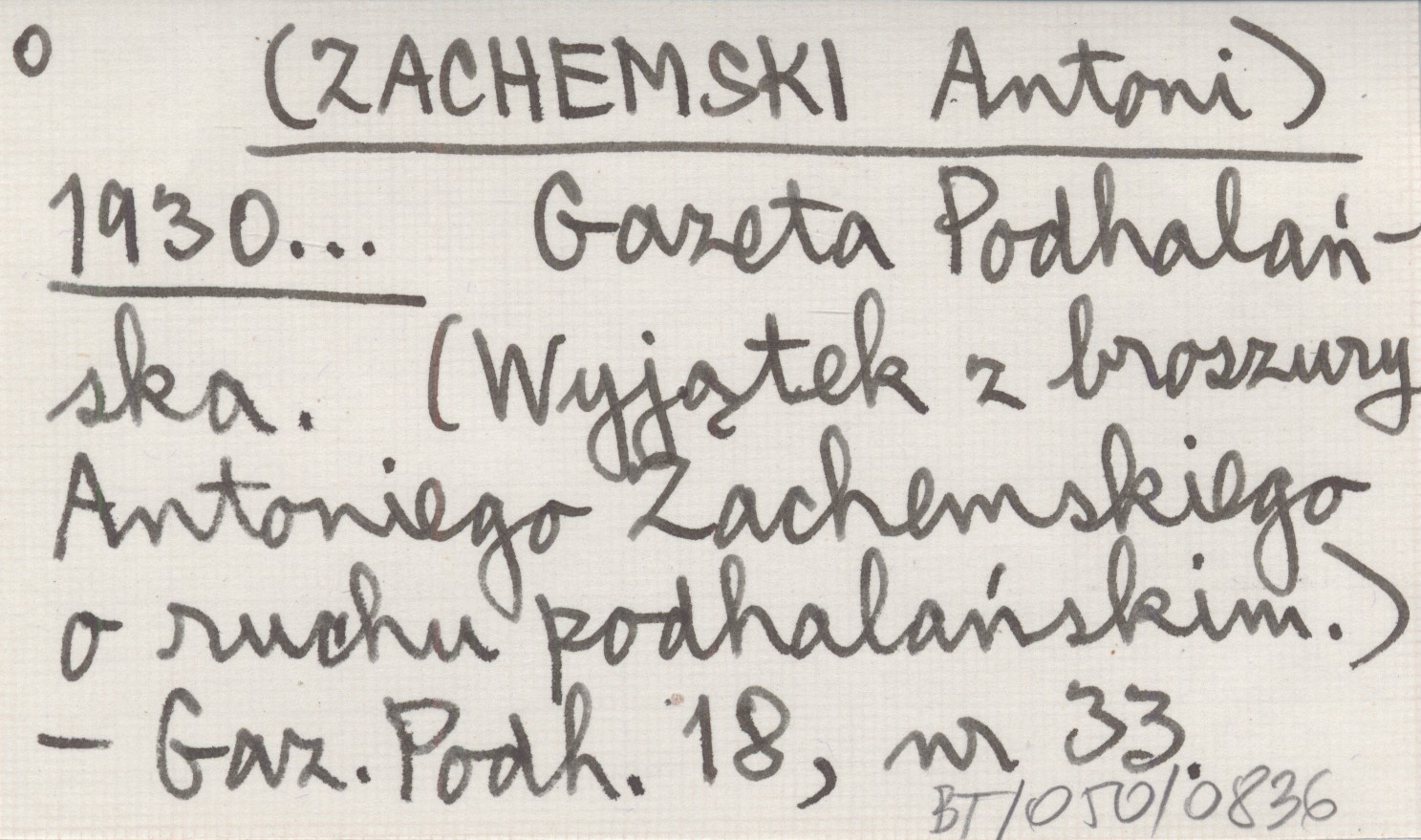 (ZACHEMSKI Antoni) 1930... Gazeta Podhalańska. (Wyjątek z broszury Antoniego Zachemskiego o ruchu podhalańskim).