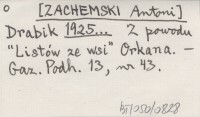 Drabik [ZACHEMSKI Antoni] 1925... Z powodu "Listów ze wsi" Orkana.