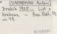 Drabik [ZACHEMSKI Antoni] 1925... List z Krakowa.