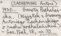 (ZACHEMSKI Antoni) 1930... Gazeta Podhalańska. (Wyjątek z broszury Antoniego Zachemskiego o ruchu podhalańskim).