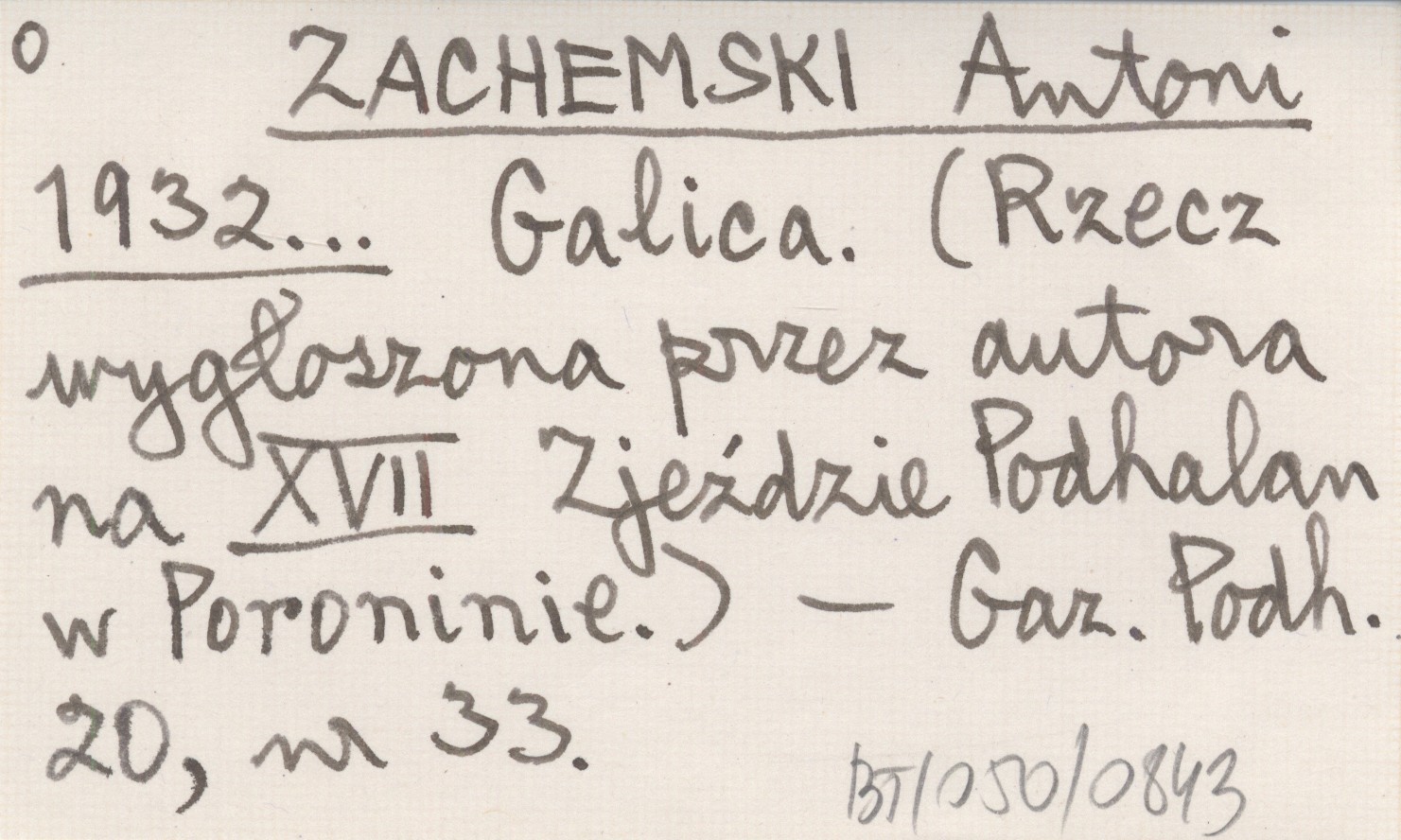 ZACHEMSKI Antoni 1932... Galica. (Rzecz wygłoszona przez autora na XVII Zjeździe Podhalan w Poroninie).