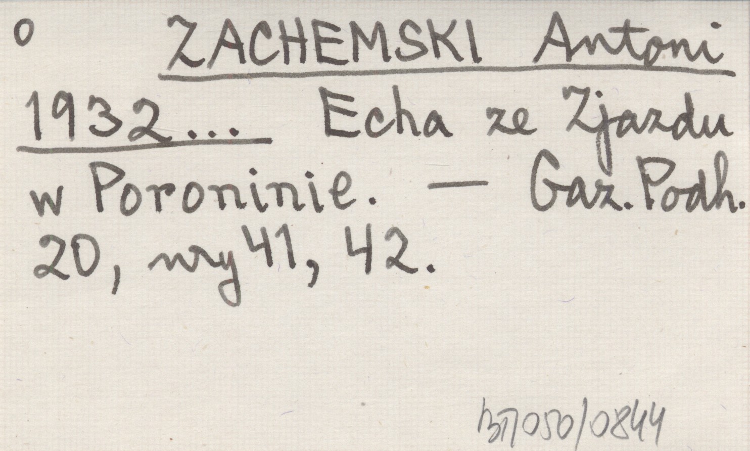 ZACHEMSKI Antoni 1932... Echa ze Zjazdu w Poroninie.