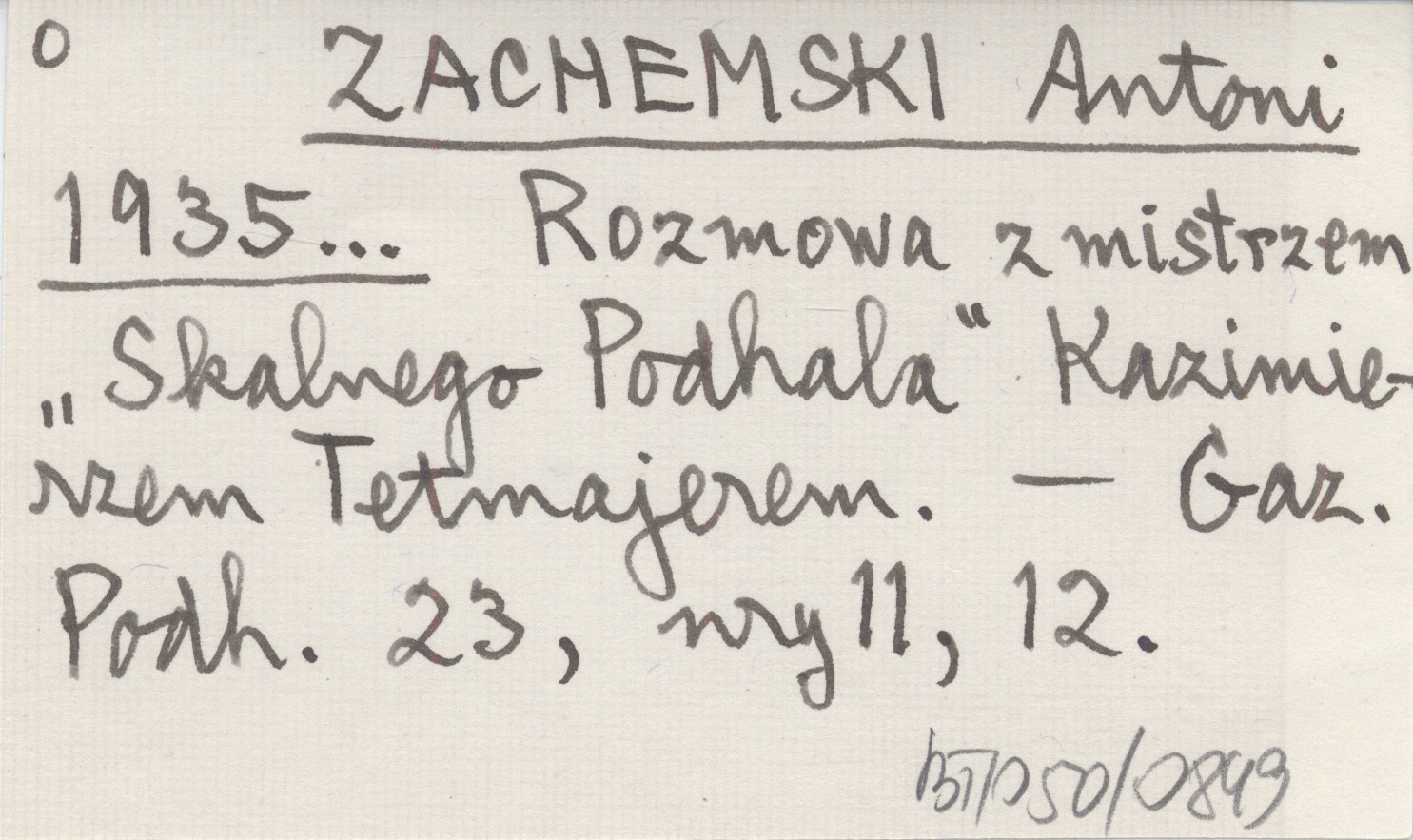 ZACHEMSKI Antoni 1935... Rozmowa z mistrzem "Skalnego Podhala" Kazimierzem Tetmajerem.