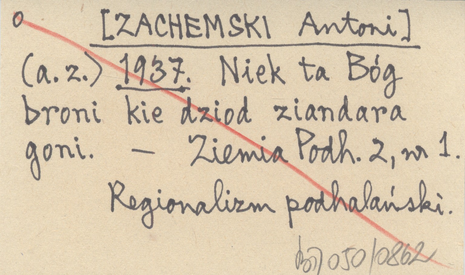 (a. z.) [ZACHEMSKI Antoni] 1937 Niek ta Bóg broni kie dziod ziandara goni.
