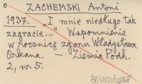 ZACHEMSKI Antoni 1937 "I mnie niedługo tak zagracie..." Wspomnienie w rocznicę zgonu Władysława Orkana.