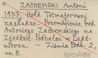 ZACHEMSKI Antoni 1936, 1937? Prokop z Ratułowa.