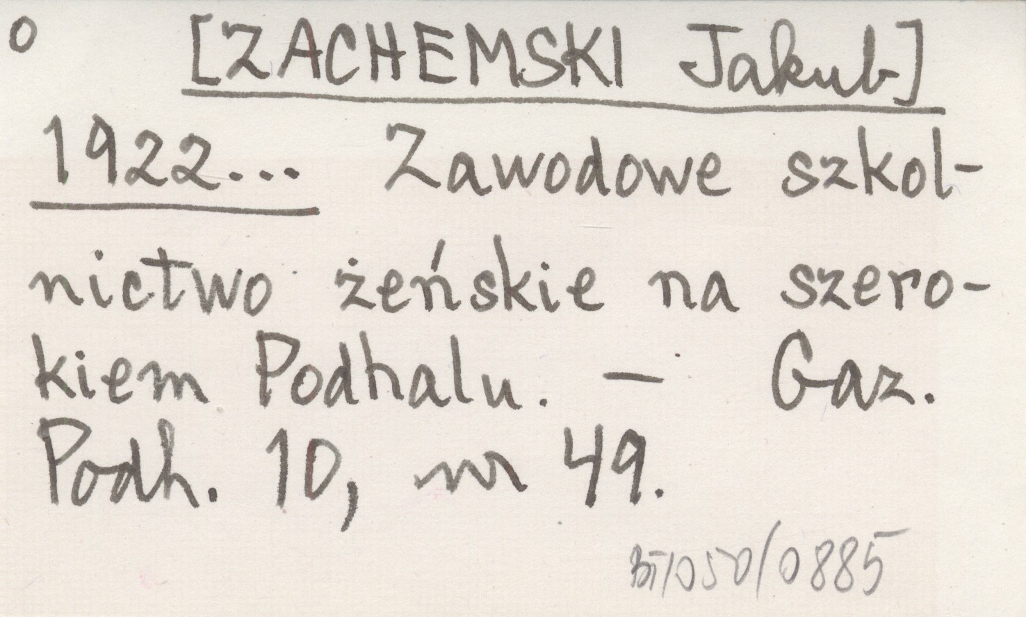 [ZACHEMSKI Jakub] 1922... Zawodowe szkolnictwo żeńskie na szerokiem Podhalu.